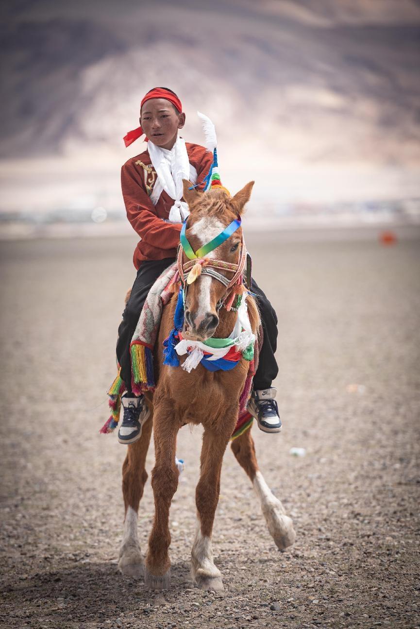 作品简介(作者自述):赛马是一项技巧性的运动,也是每年林周县望果节最为隆重的一项体育活动。活动一般以乡为单位,各乡选出优秀的骑手和马匹统一到指定的乡进行比赛。此组照片为首届彭域热柏久赛马节隆重举行。