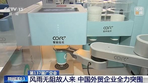 在广交会现场,“50秒一杯”的机器人咖啡亭成为“爆品”,不少外国客商宁愿排队2小时,也要喝上一杯机器人“手冲”咖啡。