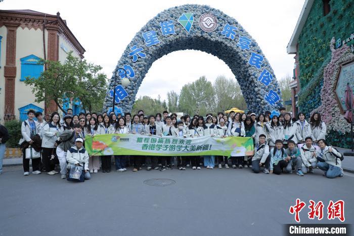 4月19日,香港青少年在新疆伊宁市六星街合影。过安泽 摄