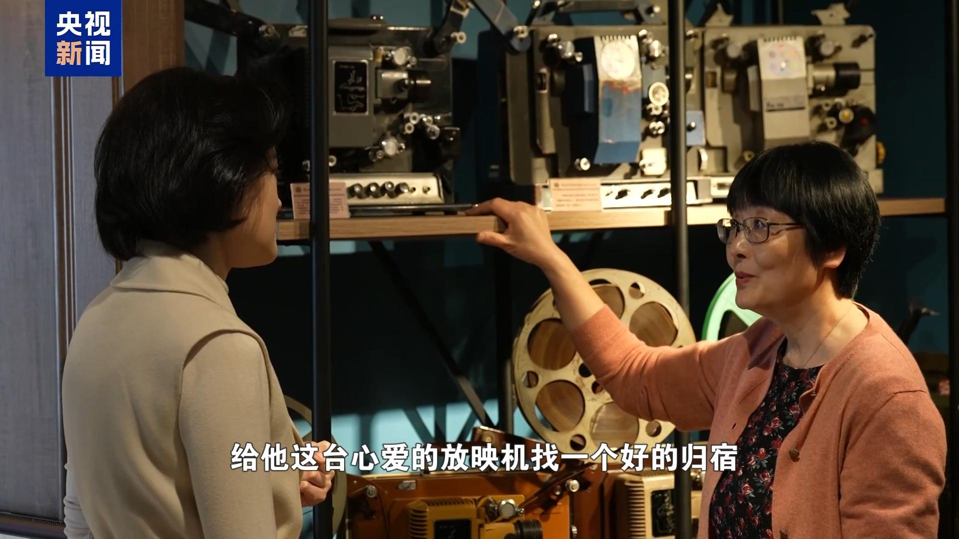 票发完了,主播来到了一家小型电影文化博物馆,它的主人是宋蕾。宋阿姨和丈夫乔伟叔叔因为电影相识。20世纪70年代,乔叔叔是一名电影放映员,酷爱看电影的宋阿姨则对放电影产生了兴趣。于是就这样,银幕上跳动的光影让两个年轻人的心越走越近,他们收获了爱情,也成了相伴一生的电影知己。2022年,宋阿姨利用业余时间,办起了这家私人的电影文化博物馆。