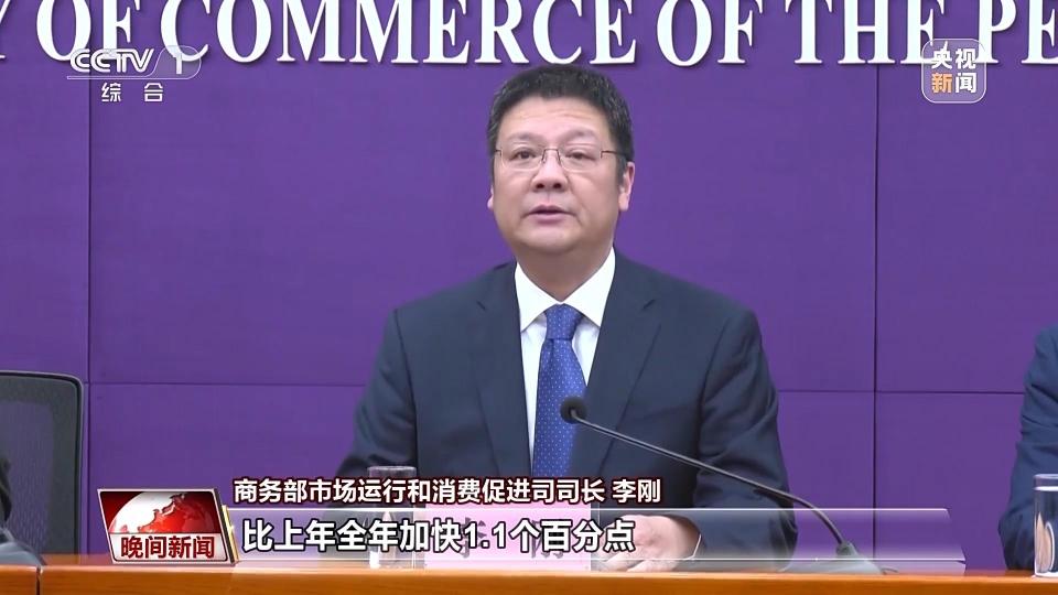 商务部市场运行和消费促进司司长 李刚:受消费品以旧换新政策带动,一季度市场销售增速回升,社会消费品零售总额同比增长4.6%,比上年全年加快1.1个百分点。