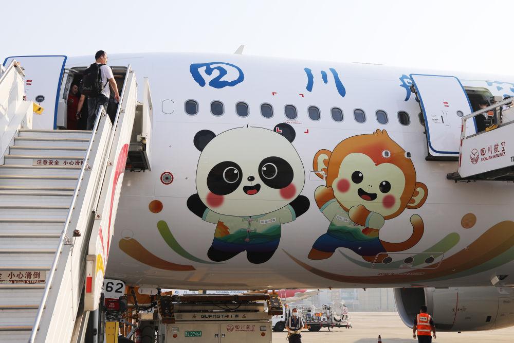 蓝天白云之上,一架喷涂着成都世运会吉祥物“蜀宝”“锦仔”的空客A330宽体客机,在万众瞩目中一飞冲天……4月18日,四川航空首架“成都世运号”主题涂装飞机首航。拥有2300多年建城史的成都,正以创新精神和饱满热情,在“家门口”迎接世运会这一国际体育盛会的到来。
