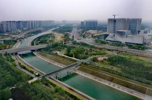 2025年4月27日在郑州市中原西路附近拍摄的南水北调中线工程(无人机照片)。新华社记者 李嘉南 摄