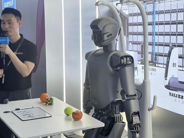 以优必选为例,据工作人员介绍,企业部分产品线的产品迭代速率,能够缩短到不足六个月。在展示区域,多个机器人秀起自己的“绝活”,有些可以弯腰拾取,端起15公斤的货物稳步前行;有些能够识别简单的线条手绘,并通过语言描述出来;有些能够通过多项采集,模仿人类精确到每个指关节的动作。
