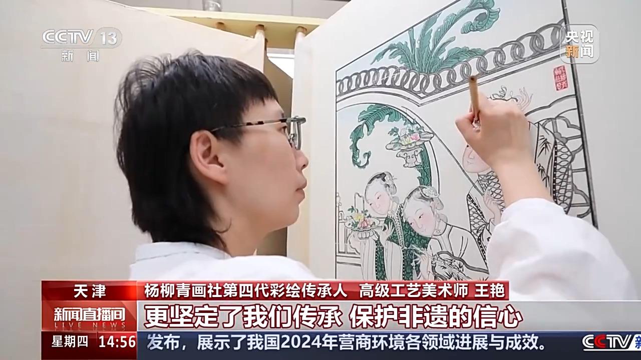 杨柳青画社第四代彩绘传承人、高级工艺美术师 王艳:人们的喜爱,让我收获了更多的文化认同感,更坚定了我们传承、保护非遗的信心,希望我们可以创作出更多具有这个时代属性的新年画。