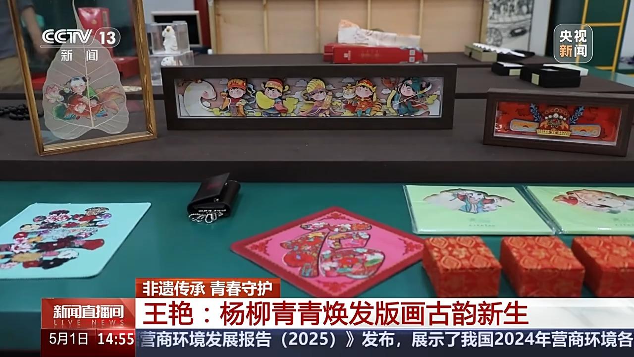 王艳在“老版复生”过程中,拆解传统技法,比如画诀中短胳膊短腿是多短?小鼻子大眼睛的比例怎样会更好?她一一详细记录,贡献了青年传承人的“新民间经验”。如今,古版年画中的杨柳青元素也被开发成各式新潮的文创产品,“过年才贴的画”变成了“身边常见的画”,让年轻的消费者爱不释手。