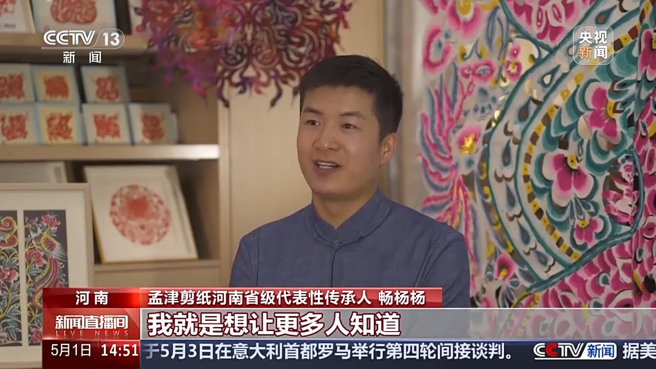 孟津剪纸河南省级代表性传承人 畅杨杨:传统的技艺是我们的根,是我们的魂。作为一名剪纸非遗代表性传承人,我希望它能够一直流传下去,在不同时代绽放出不同的美。