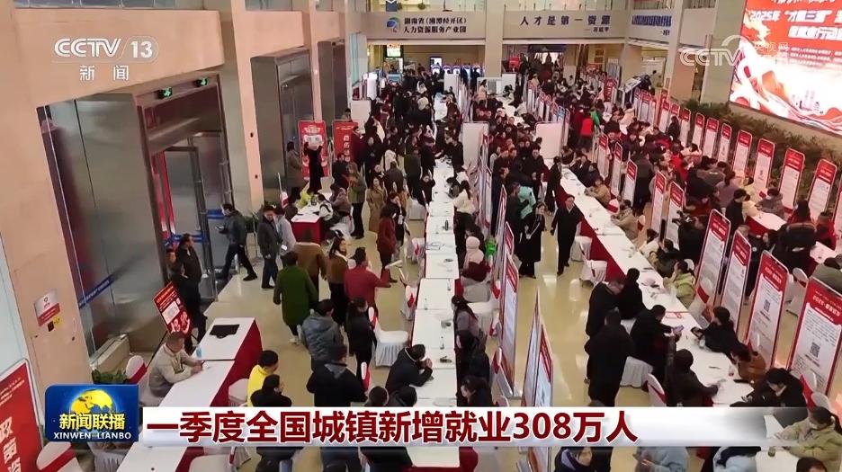 央视网消息(新闻联播):记者从人力资源社会保障部了解到,今年1至3月,全国城镇新增就业308万人,同比增加5万人,就业形势保持总体稳定。