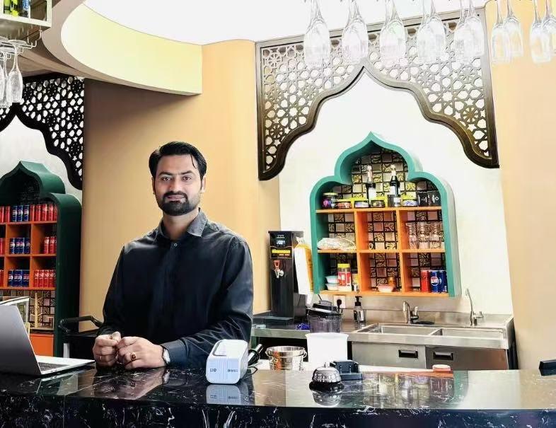 我们在中国的网络平台上都会发送电子优惠券,也有一些排行榜把我们店放上去,所以中国消费者就会特意过来尝试。我们有时也有学生折扣、会员卡的活动。得益于中国的‘过境免签’政策,我们店里有了更多的外国游客,一些外国游客可能不会用电子优惠券,我们也有一些实体店的优惠活动。最近中国的一些‘促消费’活动我们也参加了,比如在美食节摊位上展示巴基斯坦美食,让大家都尝尝。对于我们来说,不仅仅宣传了我们的美食,还可以宣传巴基斯坦文化。现在我们在成都刚开了一家新店,未来我们还想在西安也开一家。