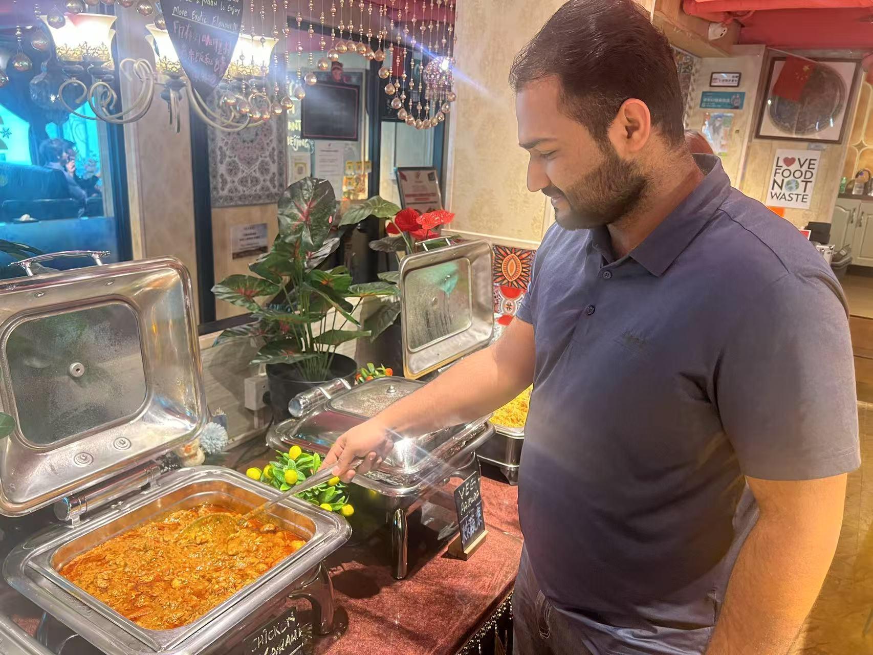采访时,正值午餐时间,客人络绎不绝,阿马德一边跟客人打招呼,一边向记者介绍。其中有一位客人是从阿尔及利亚到中国旅游的,特地从网上搜索巴基斯坦餐厅才找到这里。