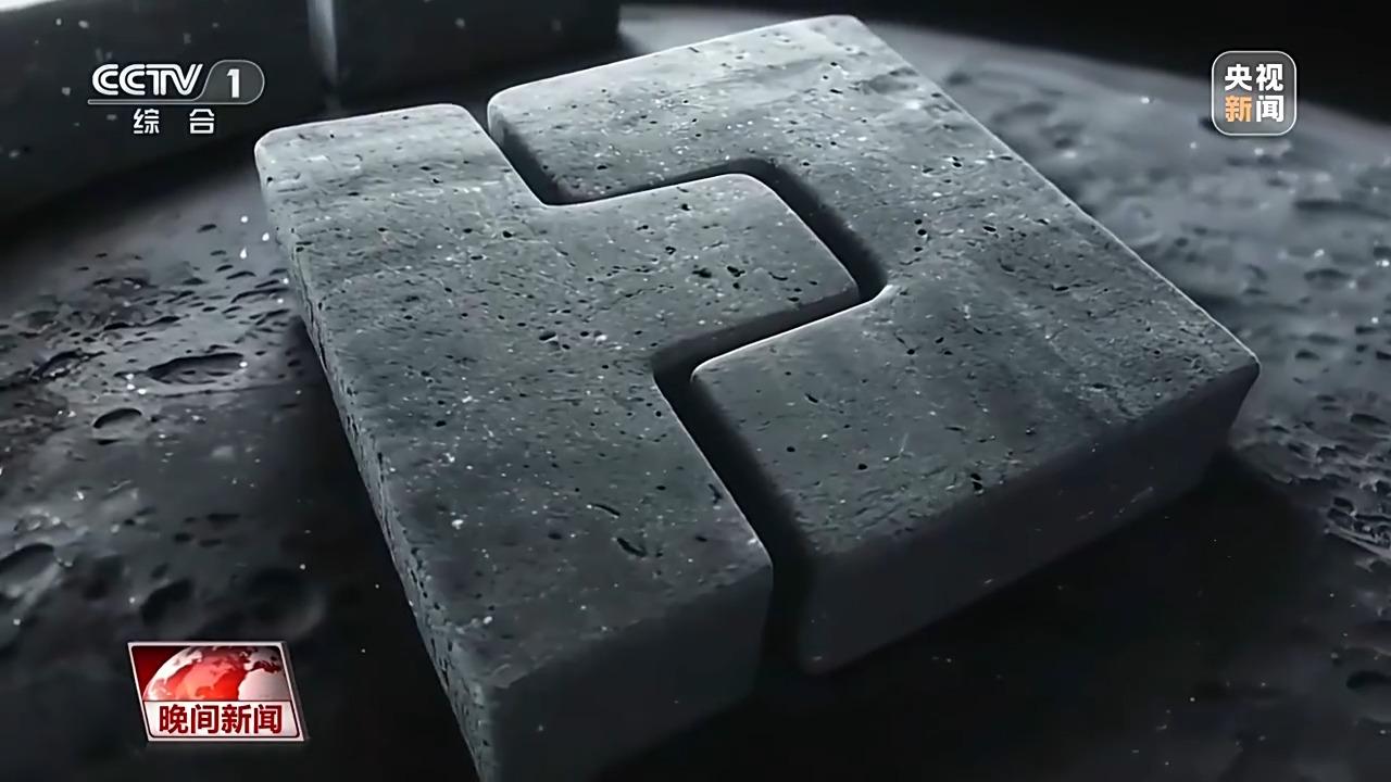 国家数字建造技术创新中心 华中科技大学教授 周诚:我们看到的这两块砖呈现的是榫卯结构,有利于在未来的月球基地的建造过程中,我们采用这样的结构形式进行拼装。