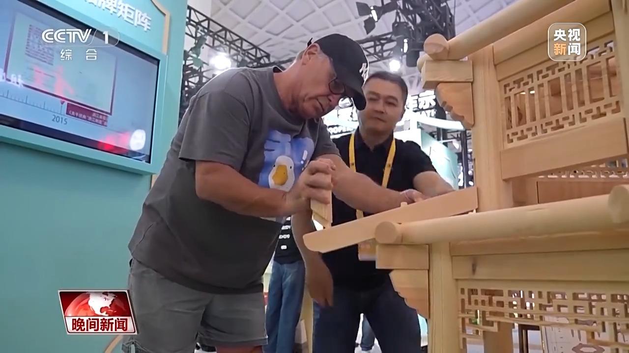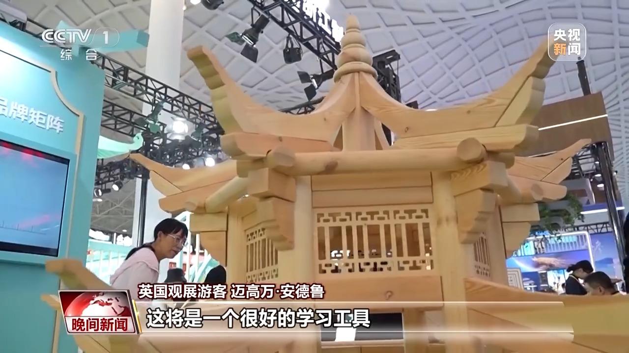 与“斗拱爷爷”一样,来自浙江杭州的刘文辉也在用自己的方式,拉近人们与传统文化之间的距离。十几年前,他开始钻研中国古建筑营造技艺,如何能让非遗技艺变得简单又快乐?刘文辉想到了把榫卯结构做成积木。在不久前的第五届中国国际消费品博览会上,刘文辉将自己研发的榫卯积木带上了展会。