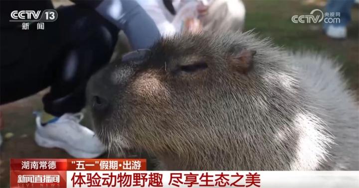 这两天,湖南常德野生动物世界迎来大量游客,假期首日就有上万名游客观光游玩。在水豚馆内,这种被昵称为“卡皮巴拉”的动物因其憨态可掬的形态,一大早就成为“流量明星”,不少游客入园后都直奔这里。