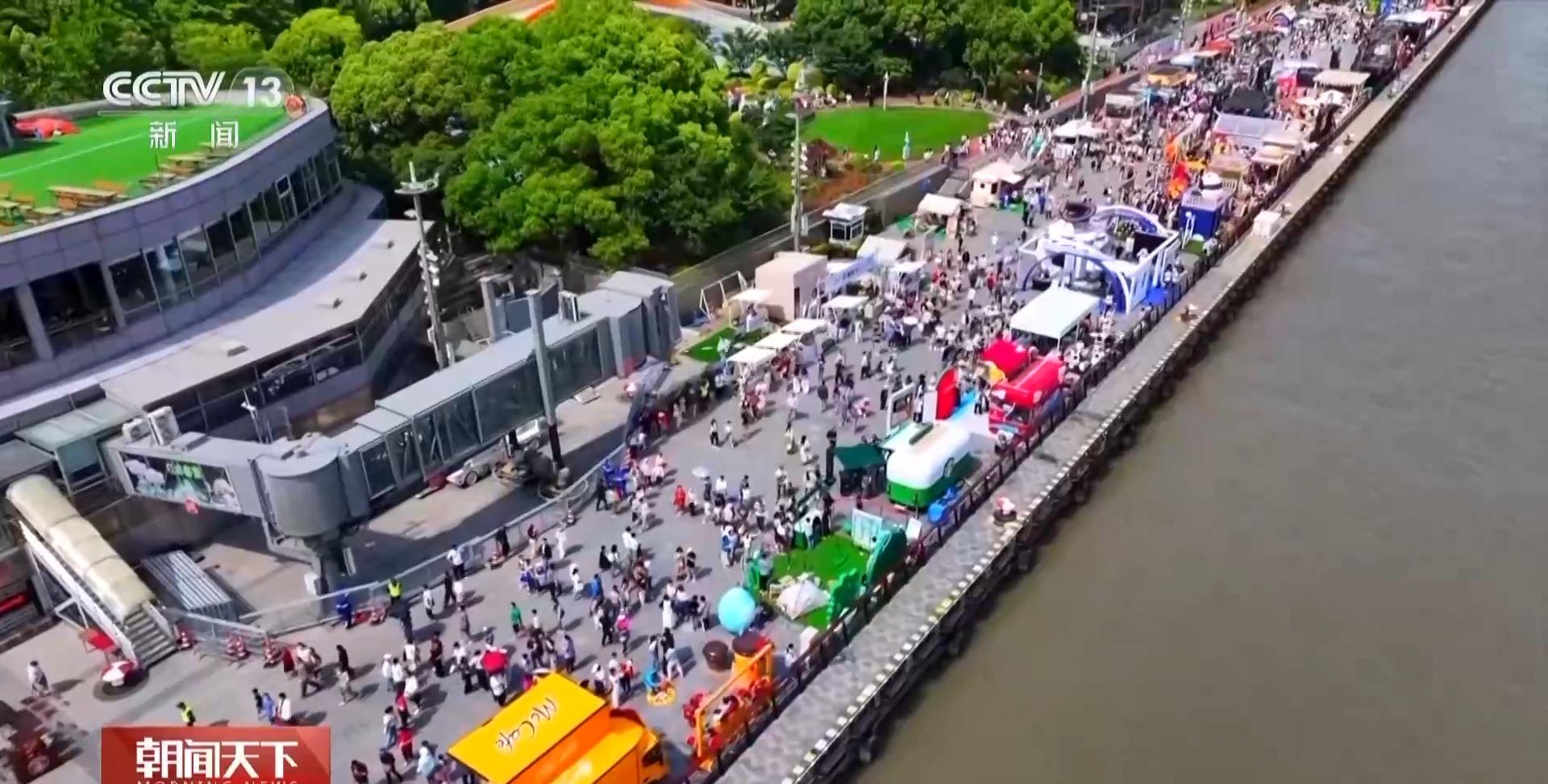 眼下,上海在中心城区的9个商圈、近百个商场、约3600个品牌,推出系列特色活动。在“咖啡+商旅文体展”现场,记者看到,两公里多的水岸线集结了超350个展位,吸引了来自各地的展商和消费者。