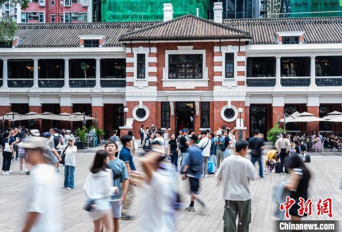 5月3日,众多游客在香港集古迹及艺术馆于一身的建筑群“大馆”参观游览。中新社记者 侯宇 摄