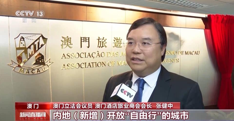 澳门立法会议员 澳门酒店旅业商会会长 张健中:内地新增开放“自由行”的城市,对珠海、横琴居民实施签证便利的政策以及团队在澳琴“团进团出”、多次往返的政策,都给澳门带来了非常多的积极的推动旅游业发展的要素。所以无论是团客、散客市场,在今年都有非常好的表现。