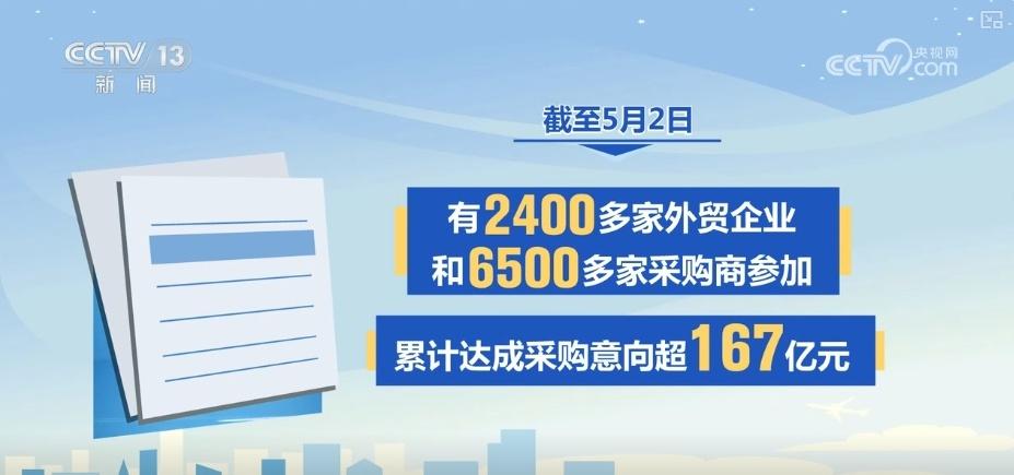 商务部数据显示,截至5月2日,上海、四川、江苏等10个重点地区先后举办“外贸优品中华行”等产销对接活动,有2400多家外贸企业和6500多家采购商参加,累计达成采购意向超167亿元。