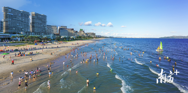 广东汕尾滨海风光。夏季到来,吸引游客来到海滨消暑。