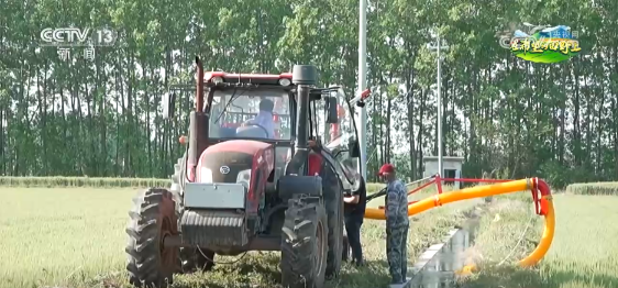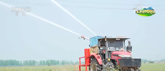 在淮安市金湖县陈渡村,种粮大户潘宝银租用了喷灌机,给他家的800亩小麦送来“灌浆水”。这种喷灌机被称为“浇地神器”,专用机具设备的喷头将水喷射到空中,种植户可通过调整灌溉半径灵活控制灌溉面积,不仅提高了作业效率,也为增产提供了保障。