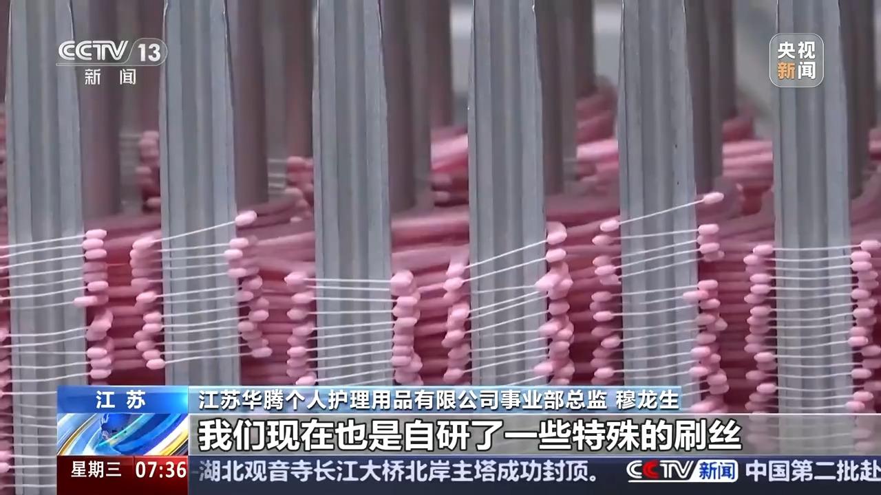 江苏华腾个人护理用品有限公司事业部总监 穆龙生:在牙线上面加入一些特定的配方,让用户在洁牙的同时也得到了护齿。我们现在也是自研了一些特殊的刷丝,这些刷丝也能完美取代一些国外进口品牌。