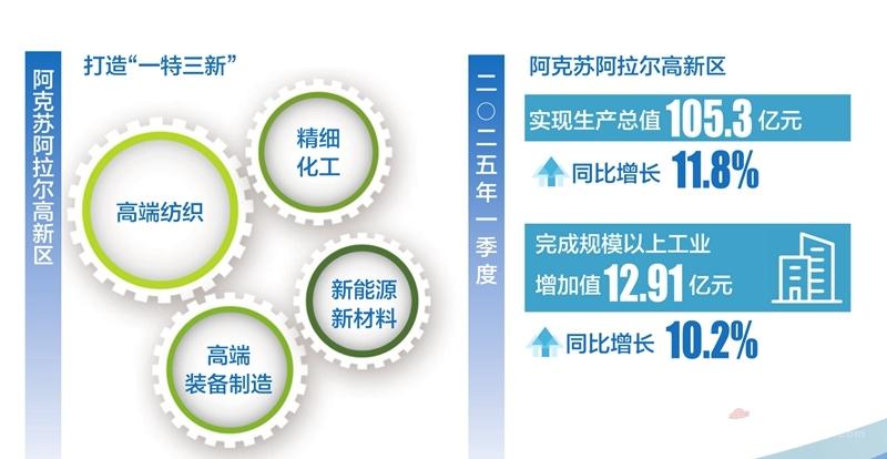 2025年一季度,阿克苏阿拉尔高新区实现生产总值105.3亿元,同比增长11.8%;完成规模以上工业增加值12.91亿元,同比增长10.2%;完成固定资产投资9.89亿元,同比增长22.15%。