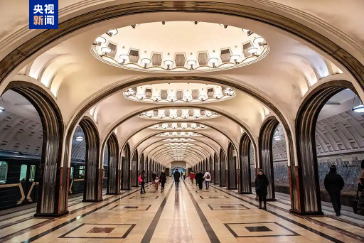 △莫斯科地铁米丘林大街站由中企中标建设,地铁站有红色立柱、团寿纹、祥云等中国元素装饰。