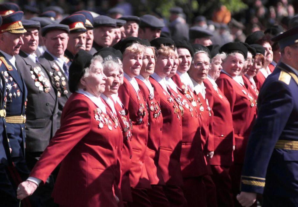 1995年5月9日,伟大卫国战争参加者和后方劳动者盛大检阅仪式在俄罗斯莫斯科红场举行。新华社记者刘宇摄