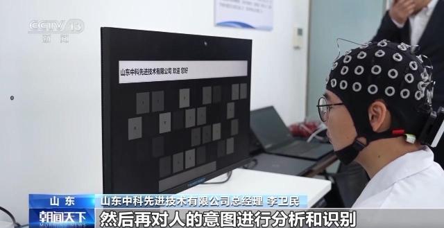 山东中科先进技术有限公司总经理 李卫民:通过脑机接口,采集实验人员的大脑信号,然后经过算法滤波、运动识别,可以判断出他想要下发的命令。