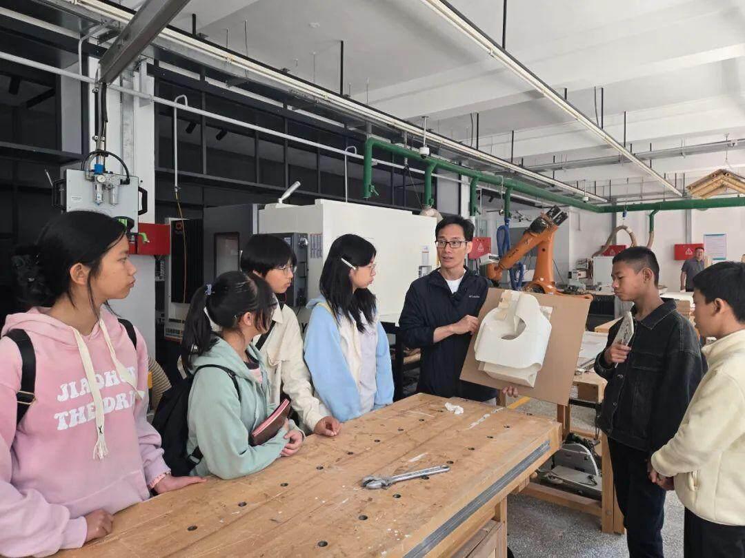 10日上午,翁城小诗人们还来到了清华大学,在清华大学建筑学院罗德胤教授的带领下参观了建筑学院。罗教授为小诗人们讲解了清华建筑学院的历史,和许多关于建筑学的知识,同学们看着这一件件建筑模型,眼里闪烁着好奇与向往。可能这个时候,一颗种子已经种在了他们的心里。