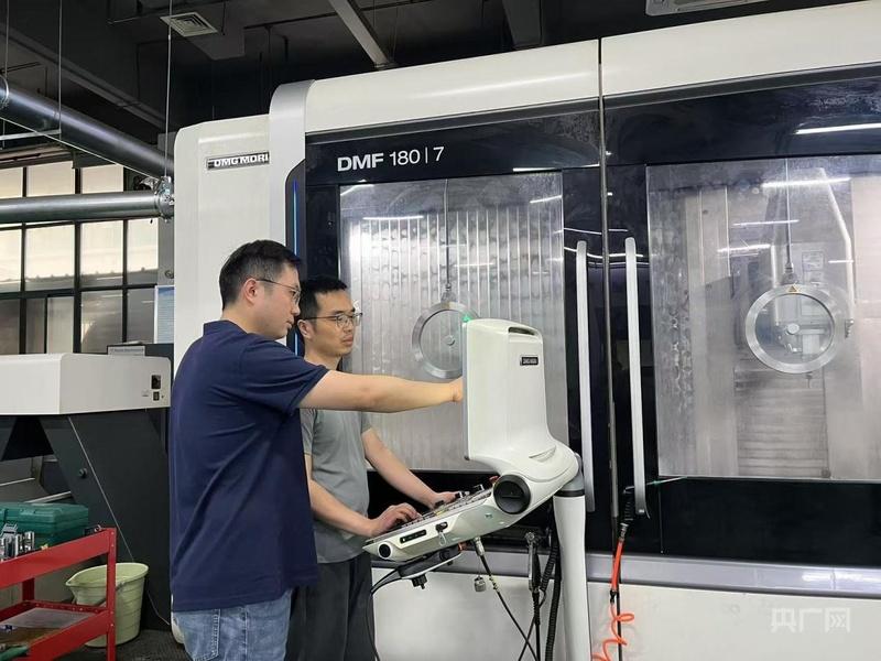 杨浩骏与团队成员研究航空装配制孔技术(央广网记者 栾永胜 摄)