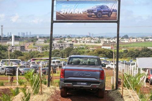 2025年4月29日,在巴西圣保罗州里贝朗普雷图市举行的2025年巴西农业科技展上,一辆比亚迪皮卡进行越野演示。新华社记者 陈昊佺 摄