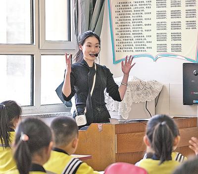在国家语言文字推广基地(中国传媒大学)兴安盟站,播音主持艺术学院的学生与支教团成员一起开展普通话培训,帮助科右前旗中小学教育工作者掌握更多语言知识。“通过与师生们相互交流、共同学习,我们在支教这堂‘大思政课’中收获了成长。”支教团成员谢卓奇说。