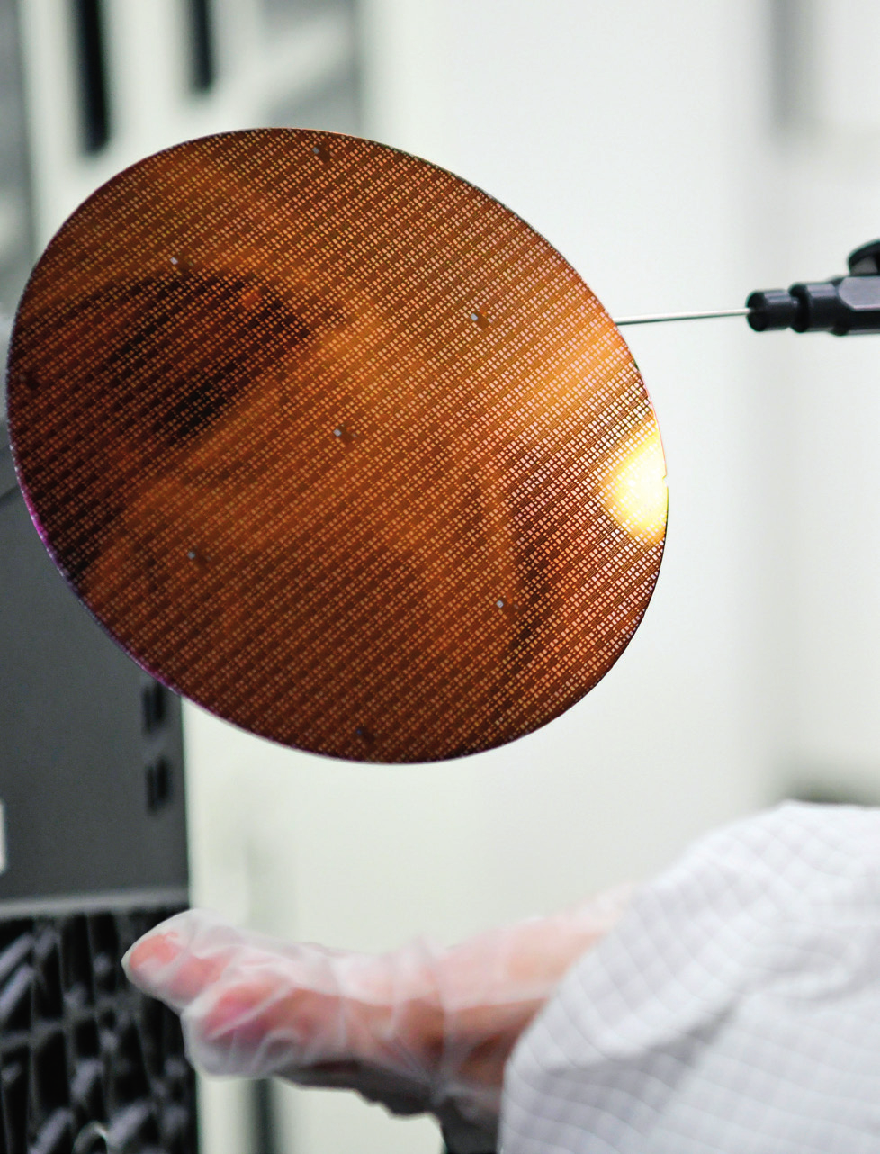 技术人员在陕西 光电子先导院科技有 限公司展示一片晶圆 (2024 年 3 月 4 日摄) 张博文摄 / 本刊