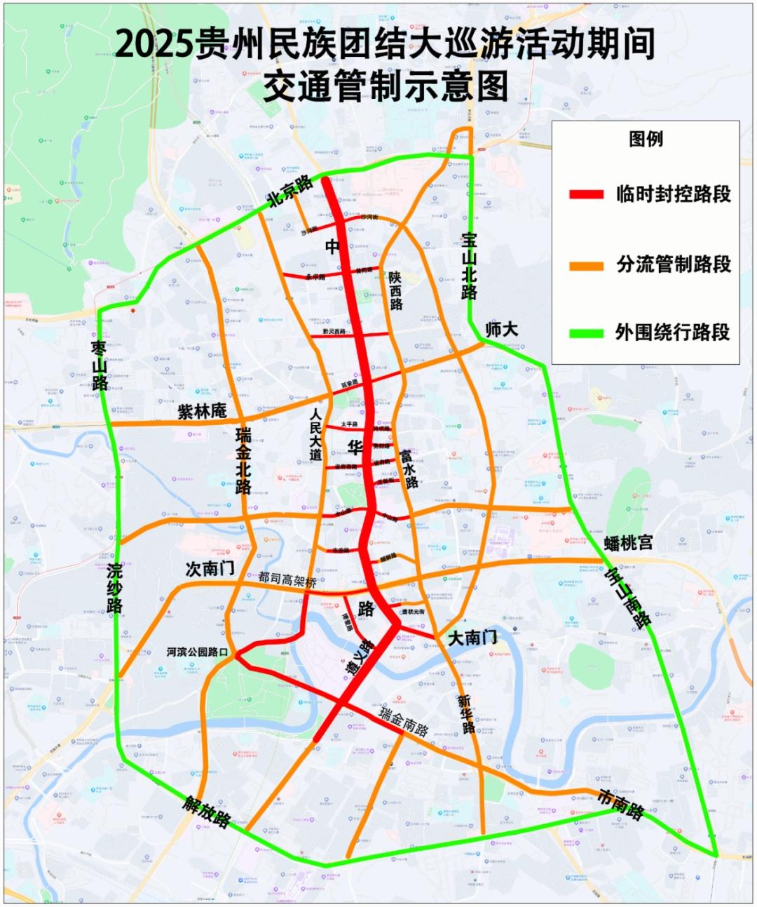 活动期间,临时交通管制区域的公交车辆行驶线路将进行调整,详情点击《关于“2025贵州民族团结大巡游”活动期间公交线路临时调整公告》。