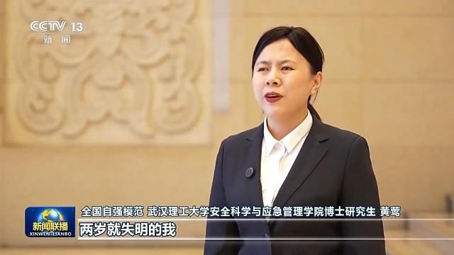 全国自强模范 武汉理工大学安全科学与应急管理学院博士研究生 黄莺:两岁就失明的我从参加普通高考到保研再到攻读博士,可以说,我是“保障残疾人平等权益”的受益者,也在不断真切地感受着习近平总书记所说的这份对残疾人的格外关心和格外关注。未来,我会继续把这份爱与关怀传递给更多残障朋友,努力成为推进中国式现代化更坚实的重要力量。