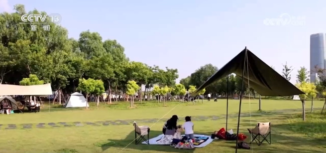 在江西南昌的赣江市民公园,每逢周末,这里便热闹非凡。露营区里,不少市民在这里搭起了天幕、帐篷,摆开野餐垫,缤纷错落的帐篷点缀绿地。大家在长达28公里的滨江景观连廊中、超9.5万平方米的绿地上,亲近自然,放松身心,享受惬意的休闲时光。