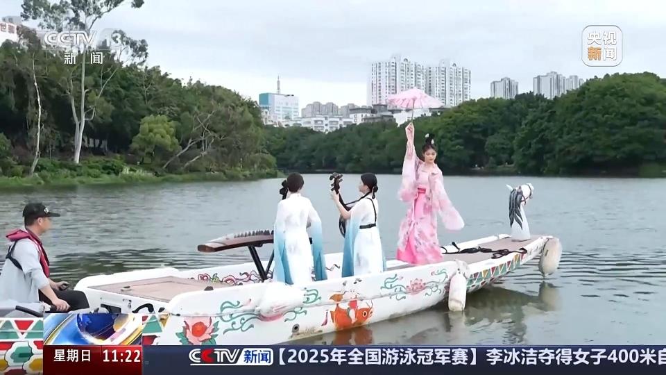 龙舟游船所过之处,碧波漾开层层翠影,古色古香的民俗表演,与两岸的葱茏绿意相映成趣,给市民游客带来一场唯美的感官盛宴。据统计,2024年,福州内河游累计接待游客超过38万人次,成为当地文旅经济新的增长点。