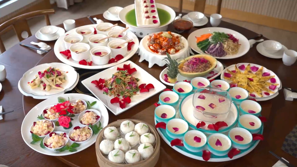 “今天很荣幸能吃到一桌都是用玫瑰花制作的菜肴,特别浪漫。”游客陈淑华说,“每一道菜都非常精致,真的是一种‘舌尖上的享受’。”