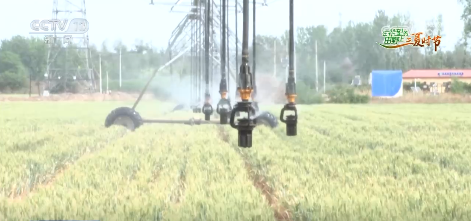 在侯马市,大型自走式喷灌机沿着轨道匀速前行,精准喷洒水雾,高效应对干热风。