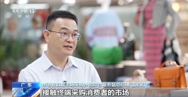 中港皮具城市场采购外贸综合服务站总经理温必闳:因为我们是第一手接触终端采购消费者的市场,比如说我卖某个包包,这种包包的颜色、大小、款式、价格,它的销量如何,直接反馈到这个产品在当地的一种需求量,客户需求最终转化到这里,给到企业就是销量跟产量。