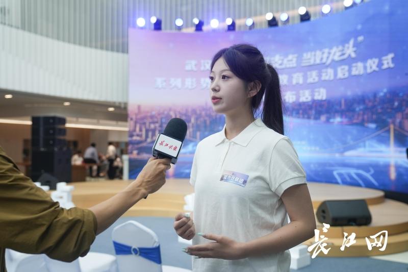 在参加武汉市“建设支点 当好龙头”系列形势政策宣传教育活动启动仪式后,城市观察团成员、武汉理工大学学生魏嘉接受采访。长江网记者彭年 摄