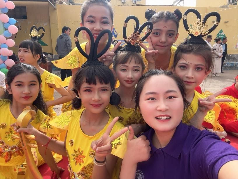 孩子们与杨婉迪的合照(央广网发 天津工业大学供图)
