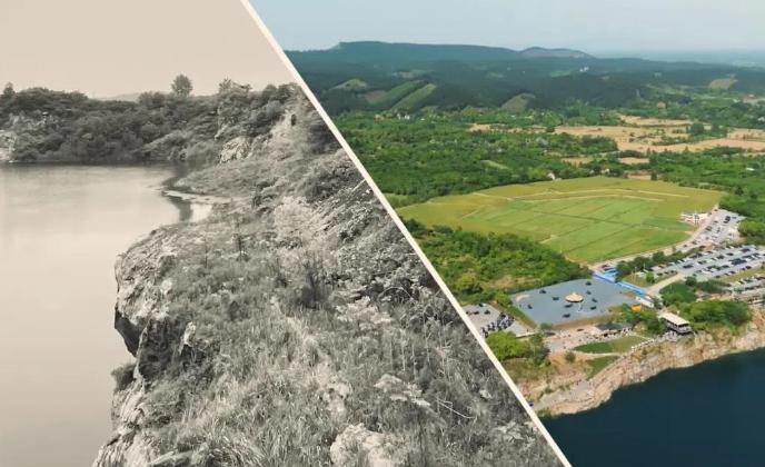 程铄钦【“深蓝计划”主理人】:在2005年之前,安吉这边主要还是开矿。“两山”理念提出后,安吉就开始陆续关停矿坑。我们这个矿坑大概是在2012年开始关停,就一直就废弃着。它最深的地方有108米,整个面积大概有360多亩,其中水域面积有280多亩。从高空无人机俯瞰的时候,它像一个爱心的形状。几年前,我们刚来的时候,它还是蛮糟糕的一个状态,虽然有保护网的隔离,但还是会有很多人翻过来拍照,会有一些生活垃圾的倾倒。当时小伙伴们在想,我们用什么样的方式把这个地方打开。