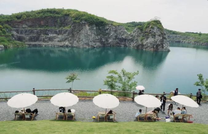 胡颖廉:现在废弃矿坑改造成了“深蓝计划”咖啡馆。我看你们的营销模式是卖门票,门票可以兑换咖啡。游客拿着这杯咖啡,可以坐在一个地方,拍照或者欣赏风景。这个咖啡融入到大自然之后,就可能更有韵味。