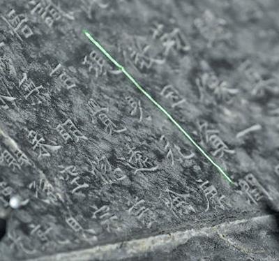 正在进行数字化扫描的《龙门二十品》之一。新华社记者 李嘉南摄