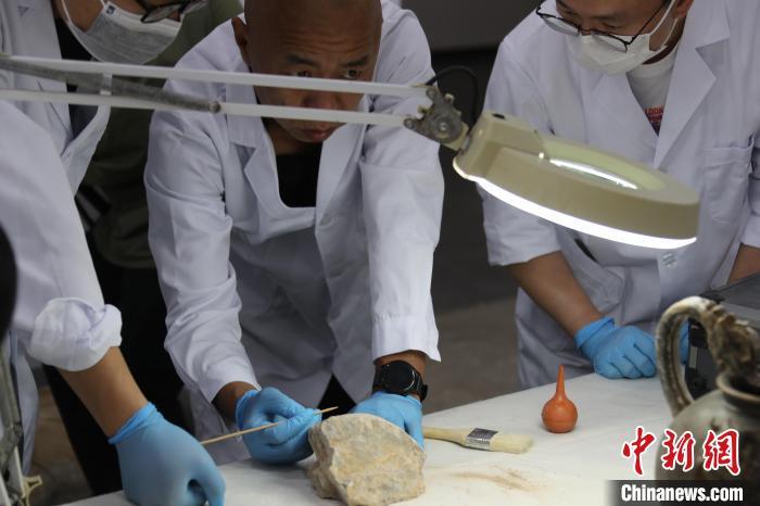 5月20日,河南洛阳,龙门石窟研究院的“文物医生”对文物进行修复。中新社记者 阚力 摄