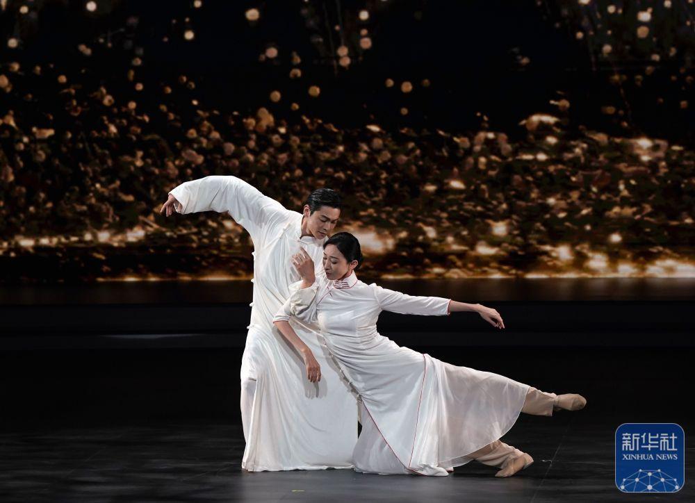 2024年6月15日,第26届上海国际电影节开幕影片、舞剧电影《永不消逝的电波》的演员在金爵盛典上表演。