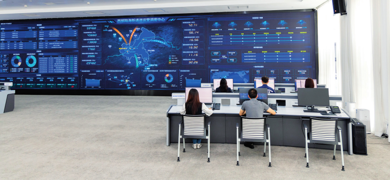 共享赋能,数字跑在物流前。在西部陆海新通道重庆无水港运营调度中心,大屏幕上的一串串数字不停跳动。管理者可实时查询沿线各地铁路、港口等信息,对沿线省区市的货源、车板、船期等进行调配,物流客户可实时查看货物运输情况。