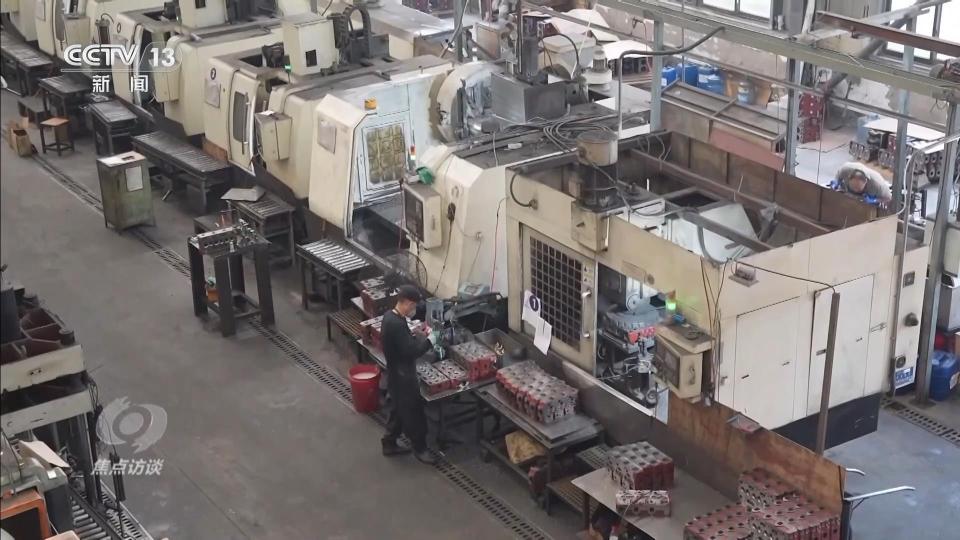 一家新能源汽车空调压缩机关键零部件的加工企业,工程师们正在对最新引进的新设备进行调试。过去由人工操控的数控车床,绝大部分都已经换成了新的全自动加工设备,用旧设备加工同样的零部件,原来3人操作6台数控机床,一天下来能加工200件这样的零部件,现在换成新设备后,一天就可以加工480件。