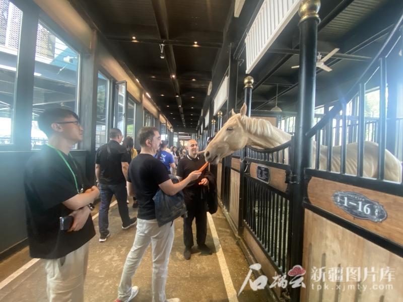 走进新疆野马古生态园,嘉宾一行与马厩中的汗血宝马、迷你小矮马、普氏野马进行亲密接触,从讲解员的讲解中了解古丝绸之路悠久历史和新疆马文化的独特魅力。